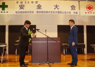平成28年度 安全大会 2016年07月28日 7月1日から7月7日までの「全国安全週間」に関連し、各種の安全活動を実施しました。 平成28年度スローガン 「見えますか? あなたのまわりの見えない危険 みんなで見つける 安全管理」 ●平成28年度安全大会 (6月21日 本所地域プラザ) (坂田建設株式会社・坂田建設株式会社災害防止協力会 共催) ●役員による現場パトロール (7月実施) ●工事部安全大会(7月実施)