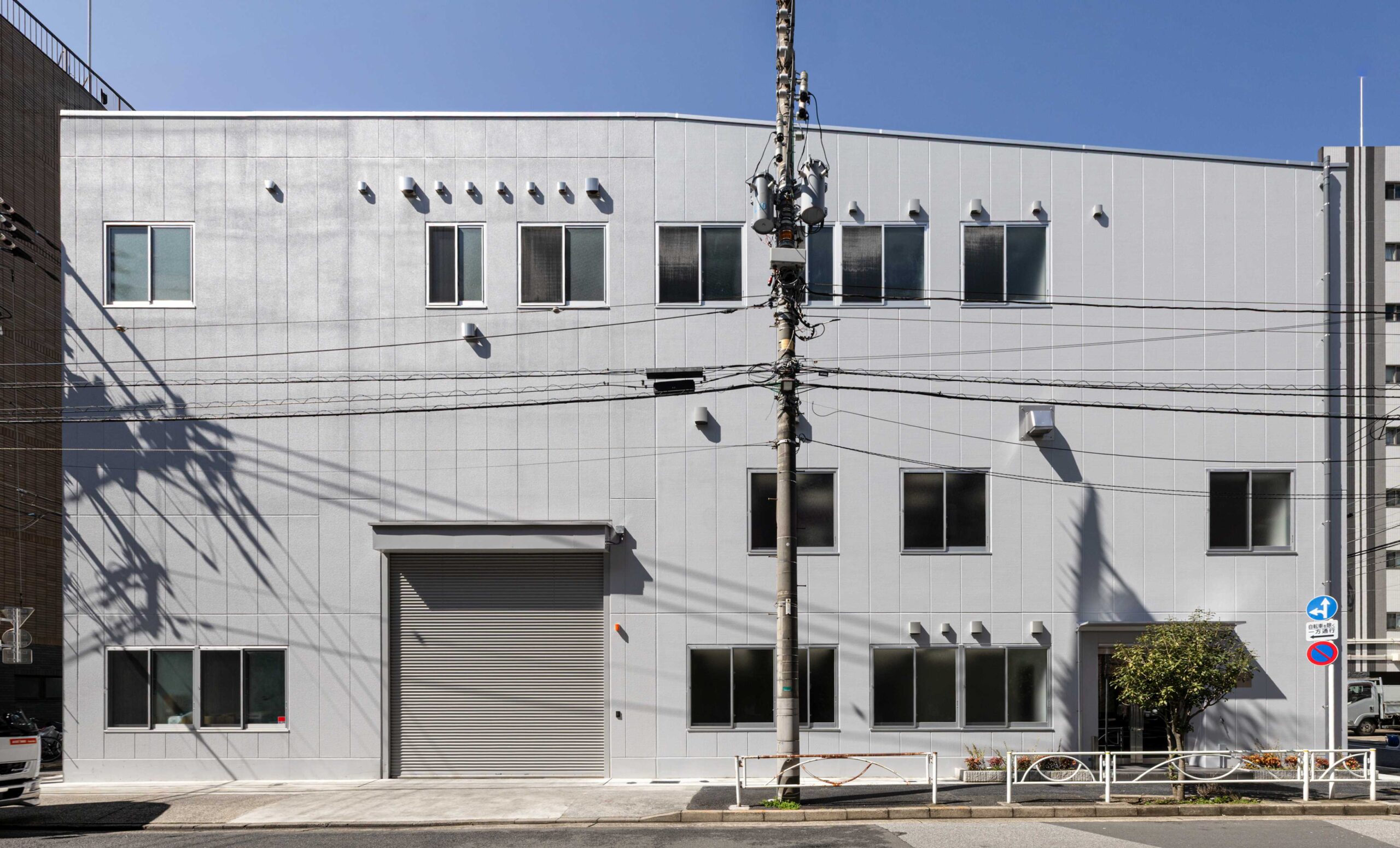 第一事業所新築 施工場所 東京都墨田区 竣工年月 2025年4月 工事概要 敷地面積 626.48 ㎡ 建築面積 491.99 ㎡ 延床面積 961.97 ㎡ 構造規模 鉄骨造 地上3階建て 倉庫・工場・事務所